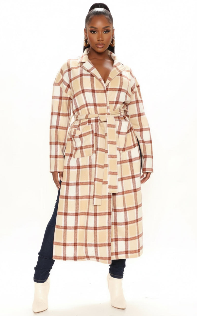 This long plaid cardigan comes with a matching belt, making it a versatile and stylish addition to any wardrobe. The classic pattern adds a touch of sophistication, while the accompanying belt can be worn to cinch the waist for a more form-flattering look. Perfect for any occasion, this cardigan is a must-have for any fashion-forward individual.